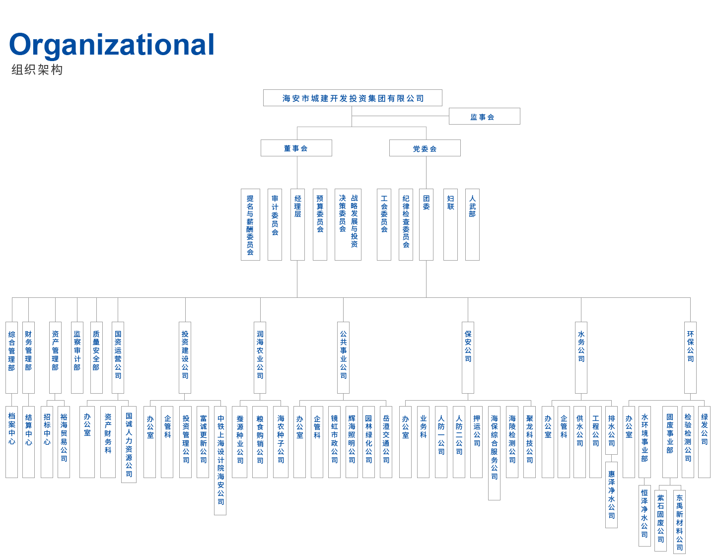 集團總資產(chǎn)1112.37億元,現(xiàn)有職工1700余人。內(nèi)設(shè)5個部門(綜合管理部、財務(wù)管理部、資產(chǎn)管理部、監(jiān)察審計部、質(zhì)量安全部),下轄7家二級公司(國資運營公司、投資建設(shè)公司、公共事業(yè)公司、保安公司、水務(wù)公司、東禹環(huán)保公司、潤海農(nóng)業(yè)公司),三級以下及代管公司共計123家。集團立足“城市運維、水務(wù)保障、保安金融、資本運營、生態(tài)環(huán)保、投資建設(shè)、現(xiàn)代農(nóng)業(yè)”七大核心主業(yè),聚焦“完善治理、強化激勵、突出主業(yè)、提高效率”發(fā)展要求,不斷強化“自我造血”功能,“1+5+7”管理模式高效運營。