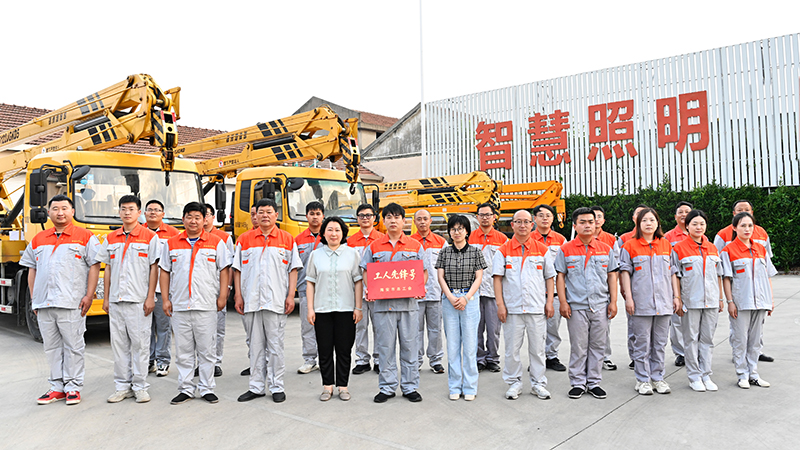 6月2日下午,集團副總經(jīng)理、公共事業(yè)公司總經(jīng)理桑培梅,集團黨委委員、副總經(jīng)理、工會主席章穎為輝海照明公司工程三科頒發(fā)海安市“工人先鋒號”榮譽牌。