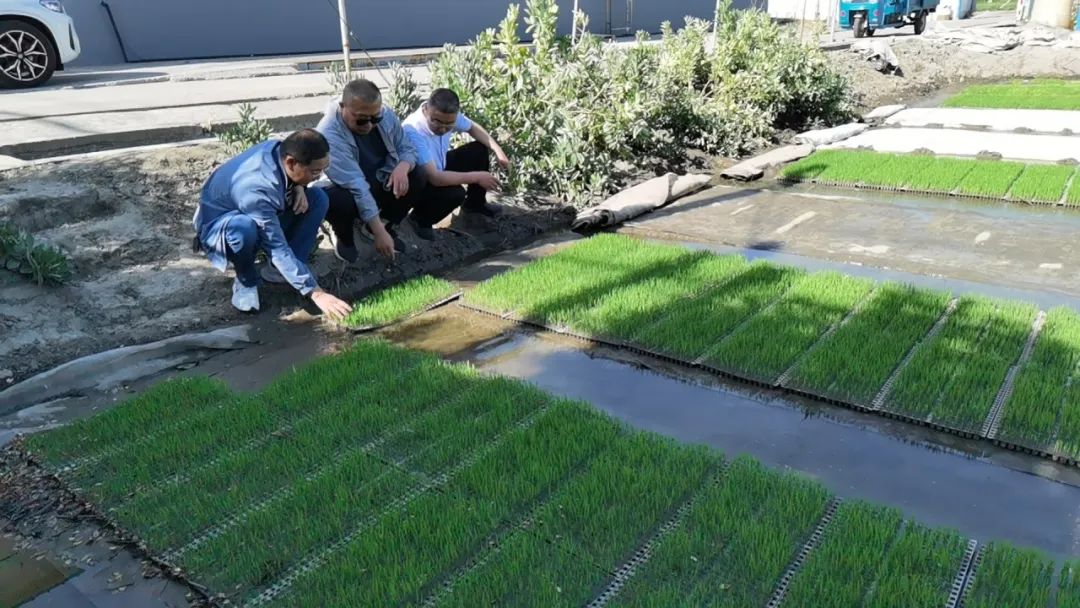 秧好半年稻,苗壯產(chǎn)量高。2024年5月16日,海安市海農(nóng)種子有限責(zé)任公司由孫慧斌帶隊,前往俞萬家庭農(nóng)場查看育秧現(xiàn)場。農(nóng)/耕/有/功豐/收/有/成一片繁忙而有序的水稻育秧現(xiàn)場映入眼簾,農(nóng)人、秧苗、土地、科技在這里和諧共鳴,每一寸土地都承載著種植戶們的辛勤與期待。走進育秧現(xiàn)場,只見一排排整齊的秧盤擺放得有條不紊,嫩綠的秧苗在溫暖的陽光下茁壯成長。這些秧苗是精挑細(xì)的優(yōu)質(zhì)水稻種子培育而成,它們不僅是豐收的