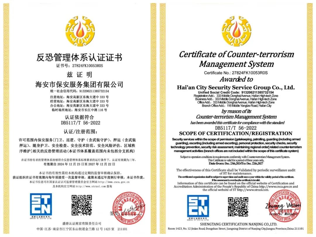 近日,城建集團(tuán)保安公司傳來喜訊,首次成功通過了反恐怖管理體系認(rèn)證、防暴力管理體系認(rèn)證、社會責(zé)任管理體系認(rèn)證以及綠色管理體系認(rèn)證。這一系列認(rèn)證標(biāo)志著保安公司在安全管理、社會責(zé)任和環(huán)境保護(hù)等方面達(dá)到了新的高度,為公司的可持續(xù)發(fā)展奠定了堅(jiān)實(shí)基礎(chǔ)。在反恐怖管理體系認(rèn)證方面,保安公司經(jīng)過嚴(yán)格的審核和評估,展示了其具備有效的反恐怖主義管理措施和安全程序。這一認(rèn)證不僅體現(xiàn)了公司在反恐安全管理方面的專業(yè)能力和承諾