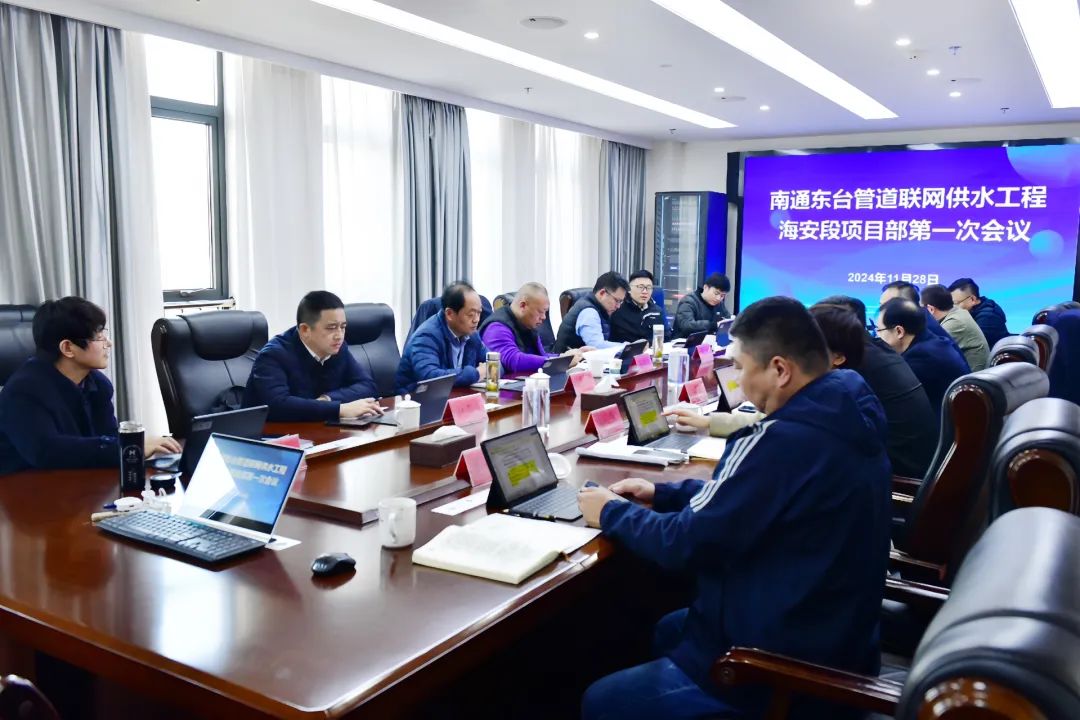 11月28日下午,南通東臺(tái)管道聯(lián)網(wǎng)供水工程海安段項(xiàng)目部在城建集團(tuán)召開第一次會(huì)議。海安市紀(jì)委監(jiān)委、財(cái)政局、審計(jì)局、住建局等部門負(fù)責(zé)人,海安市城建集團(tuán)負(fù)責(zé)人,東臺(tái)市水務(wù)局、東臺(tái)引江供水公司負(fù)責(zé)人參加會(huì)議。會(huì)議明確了通臺(tái)線海安段項(xiàng)目部組織架構(gòu)及工作職責(zé)。會(huì)議就《南通東臺(tái)管道聯(lián)網(wǎng)供水工程(如皋段)專項(xiàng)合作協(xié)議》《南通東臺(tái)管道聯(lián)網(wǎng)供水工程(海安段)專項(xiàng)合作協(xié)議》《通臺(tái)線海安段重大事項(xiàng)決策及資金管理辦法》、通